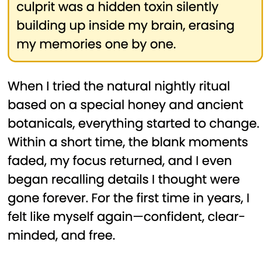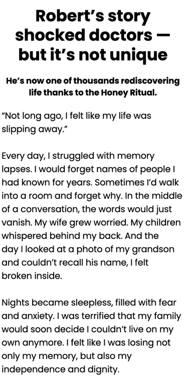 It always starts small—forgetting names, misplacing your keys, or blanking mid-sentence. What most people don’t realize is that these tiny slips are the earliest red flags of memory collapse. But now, a strange honey ritual, hidden for centuries, is helping thousands fight back and bring clarity to their minds again.